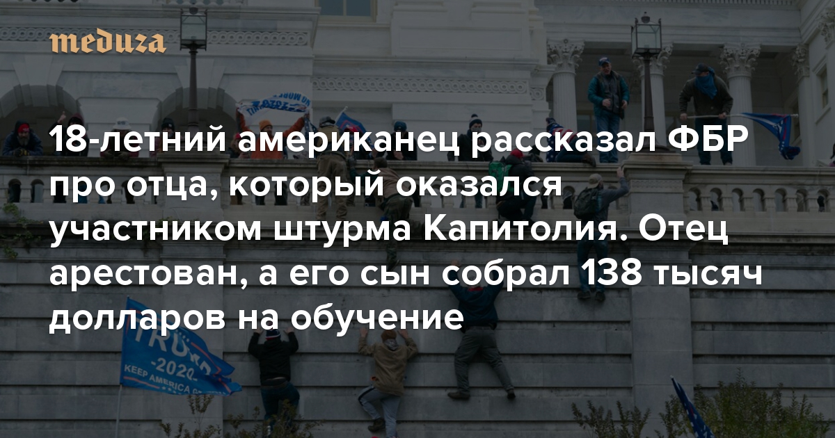 18-летний американец рассказал ФБР про отца, который оказался участником штурма Капитолия Отец арестован, а его сын собрал 138 тысяч долларов на обучение