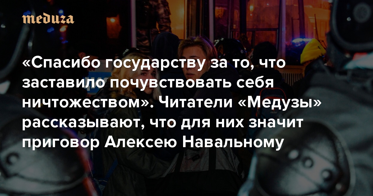 «Спасибо государству за то, что заставило почувствовать себя ничтожеством» Читатели «Медузы» рассказывают, что для них значит приговор Алексею Навальному