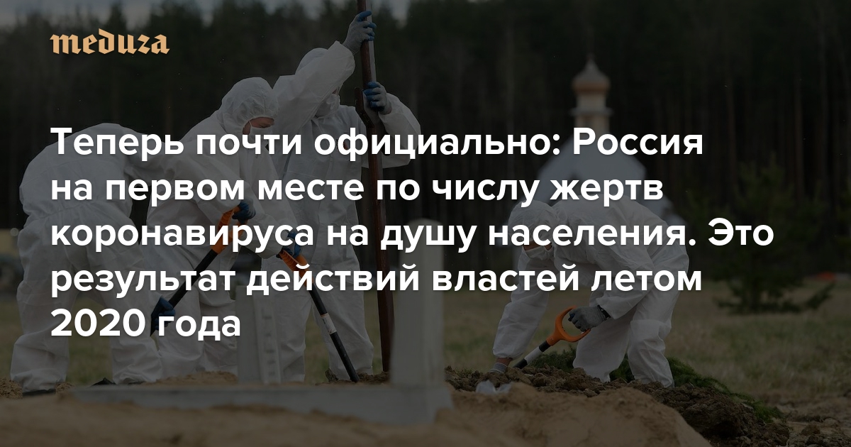 Теперь почти официально: Россия на первом месте по числу жертв коронавируса на душу населения. Это результат действий властей летом 2020 года