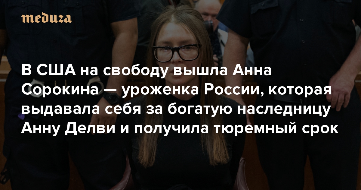 Из тюрьмы в Нью-Йорке вышла 30-летняя уроженка России Анна Сорокина (также известная как Анна Делви), в 2019 году осужденная за хищение около 200 тысяч долларов. Об этом пишет The Insider со ссылкой на данные Департамента исправительных учреждений штата Нью-Йорк. Информацию об освобождении Сорокиной подтвердил источник The Insider.