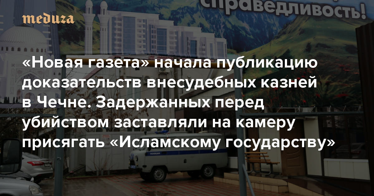 «Новая газета» начала публикацию доказательств внесудебных казней в Чечне. Задержанных перед убийством заставляли на камеру присягать «Исламскому государству»