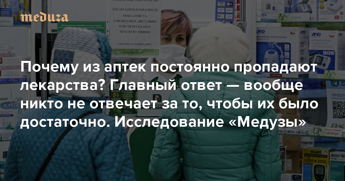Мы изучили, почему из российских аптек постоянно пропадают лекарства. Главный ответ — вообще никто не отвечает за то, чтобы их было достаточно Большое исследование «Медузы»