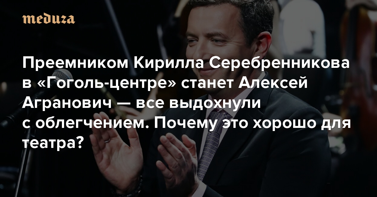 9 февраля, после тревожного шестидневного молчания, Кирилл Серебренников наконец-то подтвердил, что и правда покинет «Гоголь-центр» к концу месяца. В тот же день столичный департамент культуры назвал имя его преемника — Алексея Аграновича. Зрители «Гоголь-центра» и неравнодушные к площадке профессионалы театра восприняли эту новость с облегчением.