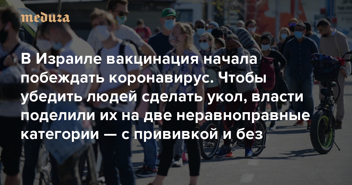 В Израиле вакцинация начала побеждать коронавирус — даже несмотря на британский штамм Чтобы убедить людей сделать укол, власти поделили их на две неравноправные категории — с прививкой и без
