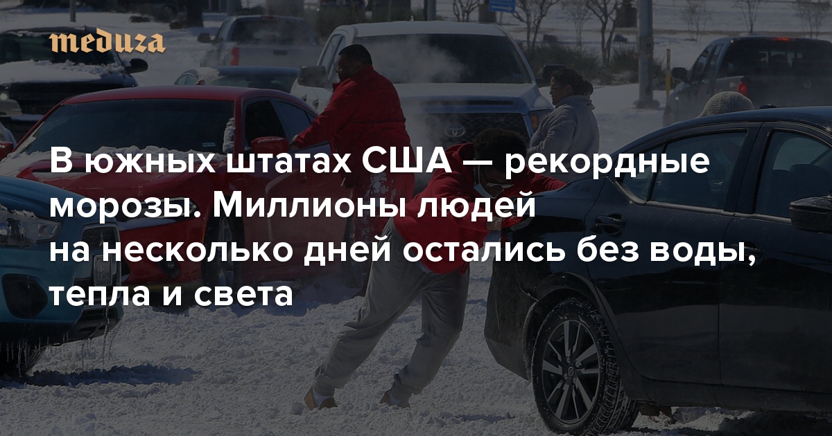 В нескольких южных штатах США уже неделю стоят аномально низкие температуры. Из-за вызванных ими аварий в коммунальных сетях миллионы человек остались без тепла и воды в условиях сильнейших морозов. Среди затронутых стихией штатов больше всех пострадал Техас — штат, который производит значительную часть электроэнергии для многих регионов страны. Из-за прекращения ее поставок предприятия в других регионах несут многомиллионные убытки. Происходящее повлияло даже на мировые цены на нефть.