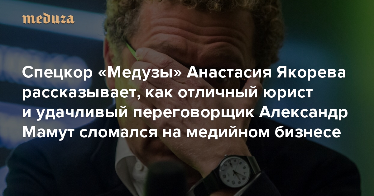 Человек без костей Спецкор «Медузы» Анастасия Якорева рассказывает, как отличный юрист и удачливый переговорщик Александр Мамут сломался на медийном бизнесе