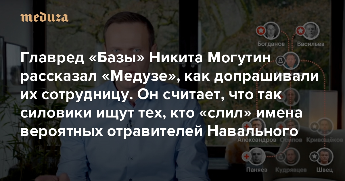 Главред «Базы» Никита Могутин рассказал «Медузе», как задерживали и допрашивали их сотрудницу Он считает, что именно так силовики ищут тех, кто «слил» имена вероятных отравителей Навального