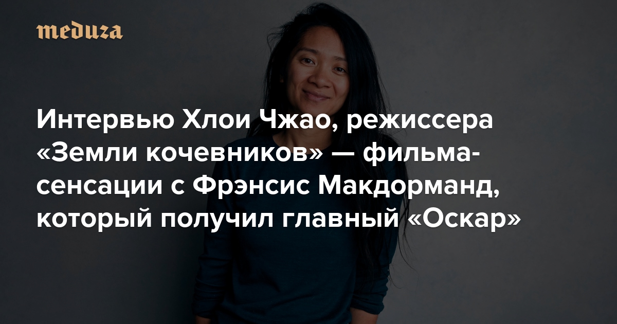 38-летняя Хлоя Чжао родилась в Китае, некоторое время жила в Великобритании, потом переехала в США, где сделала себе имя, снимая независимое кино. Ее две первые картины «Песни, которым меня научили братья» (2015) и «Наездник» (2017), снятые в индейских резервациях с участием актеров-непрофессионалов, получили высокую оценку критиков и участвовали в фестивалях. Третий фильм Чжао «Земля кочевников» стал сенсацией 2020 года, победив сразу на двух фестивалях — в Венеции и Торонто, а после этого получив «Золотые глобусы» за лучшую драму и режиссуру (женщине эта награда за всю историю премии досталась лишь во второй раз) и главный «Оскар». Накануне выхода «Земли кочевников» в России постановщица ответила на вопросы кинокритика «Медузы» Антона Долина.