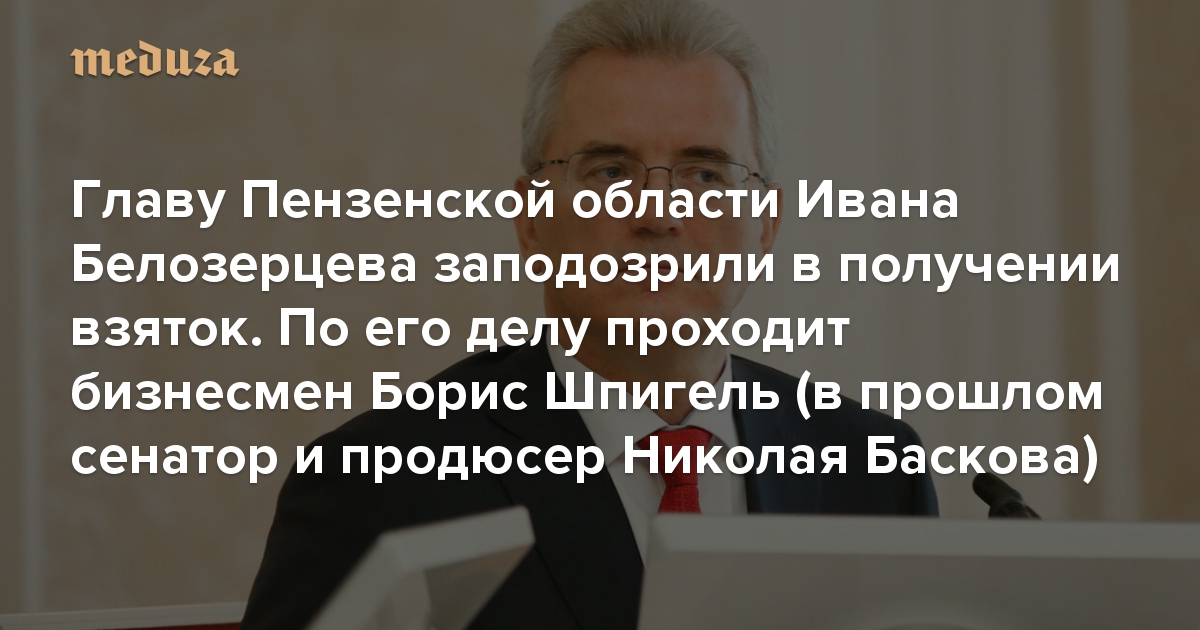 Главу Пензенской области Ивана Белозерцева заподозрили в получении взяток от Бориса Шпигеля Это создатель компании-лидера по поставкам лекарств от COVID-19 и бывший продюсер певца Николая Баскова