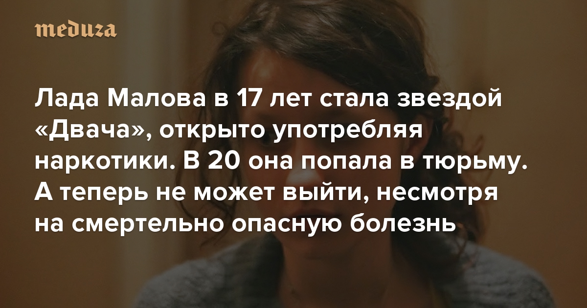 Ладе Маловой 24 года, уже больше четырех из них она находится в колонии. Еще в 17 лет девушка стала звездой «Двача», снимая видео, как она употребляет наркотики, — а потом получила срок за хранение и попытку сбыта запрещенных веществ. В колонии у девушки развилось сразу несколько тяжелых заболеваний. Мать Маловой и юристы опасаются, что она может умереть, и пытаются добиться ее освобождения — но безуспешно. «Медуза» рассказывает, что известно о ситуации.