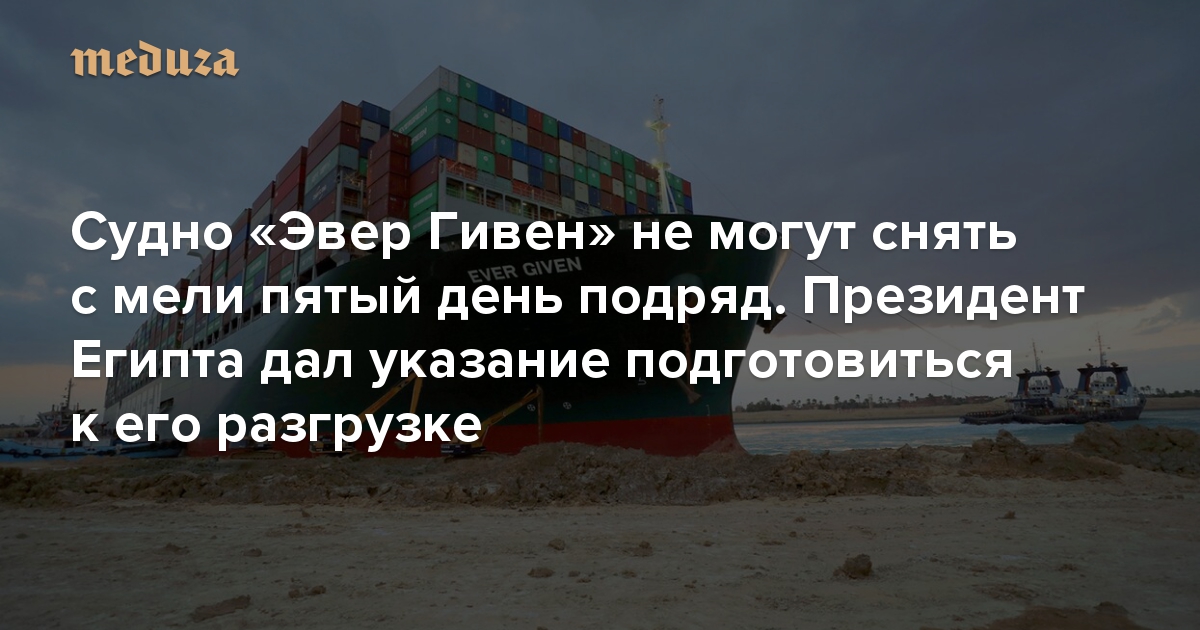 Судно «Эвер Гивен» не могут снять с мели пятый день подряд. Президент Египта дал указание подготовиться к его разгрузке