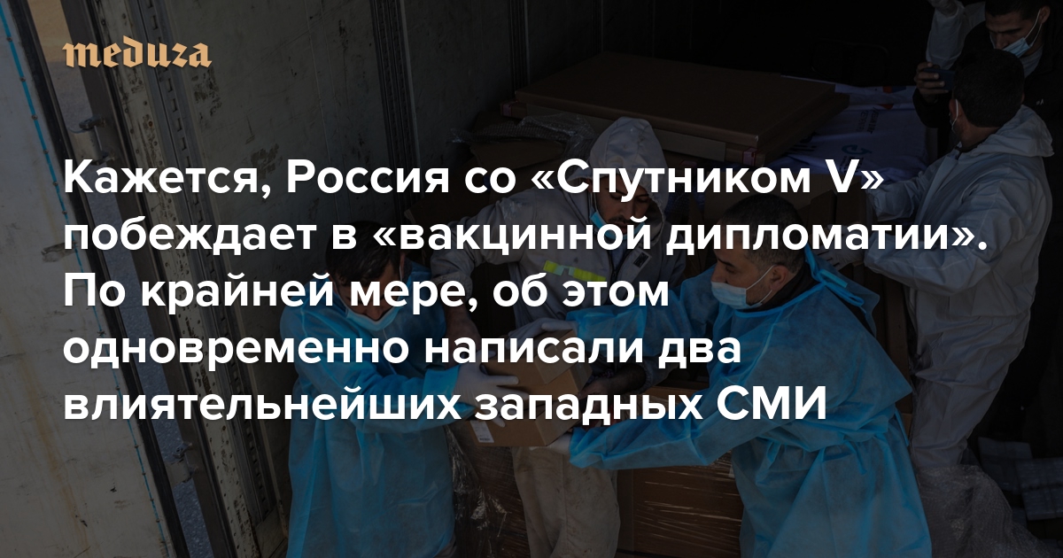 Кажется, Россия со «Спутником V» побеждает в «вакцинной дипломатии». По крайней мере, об этом одновременно написали два влиятельнейших западных СМИ