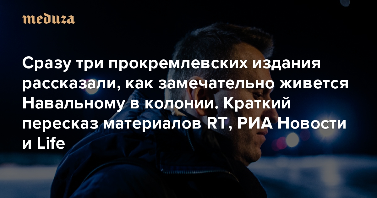 Сразу три прокремлевских издания рассказали, как замечательно живется Навальному в колонии Пересказ материалов RT, РИА Новости и Life — для тех, кто не может заставить себя изучить их в оригинале