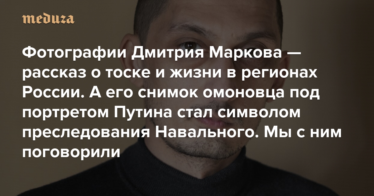Фотографии Дмитрия Маркова — рассказ о тоске и жизни в регионах России. А его снимок омоновца под портретом Путина стал символом преследования Навального Мы с ним подробно об этом поговорили