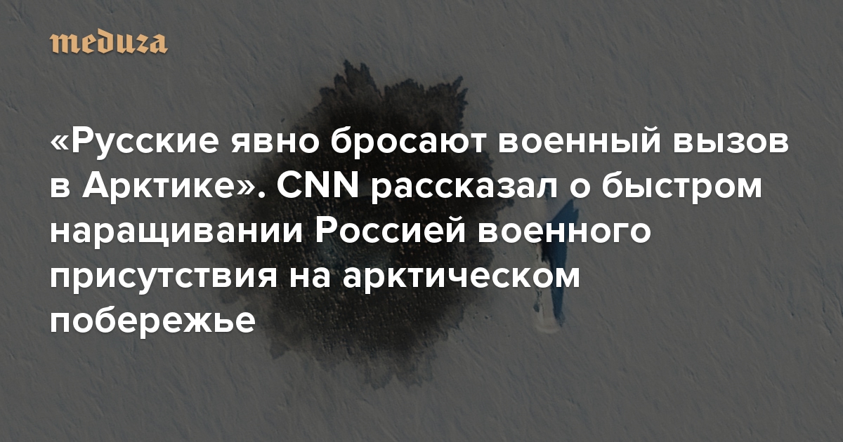 Россия уже несколько лет беспрецедентными темпами наращивает военное присутствие в Арктике и испытывает там свое новейшее оружие, стараясь закрепить контроль над этим регионом в целом и над недавно освободившимся от льда стратегическим судоходным путем из Азии в Европу в частности. Об этом говорится в материале телеканала CNN, который ссылается на новые спутниковые снимки Арктики, а также на высокопоставленных западных чиновников и экспертов. «Медуза» пересказывает этот текст.