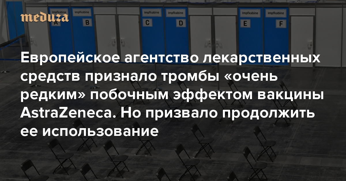 Европейское агентство лекарственных средств признало тромбы «очень редким» побочным эффектом вакцины AstraZeneca. Но призвало продолжить ее использование