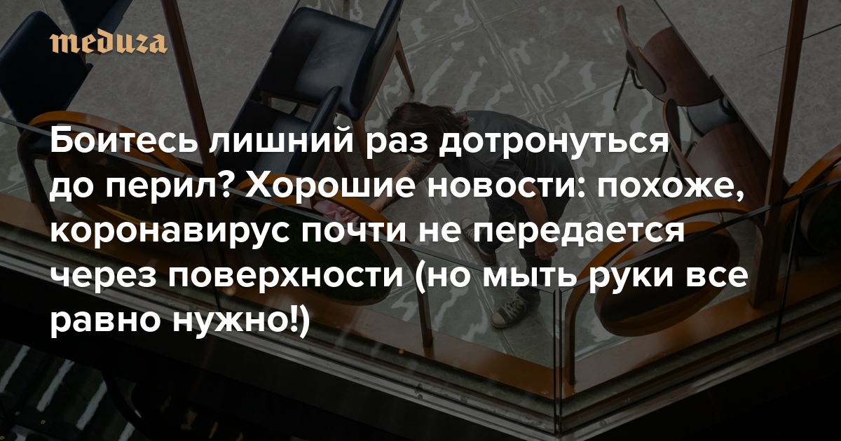 Боитесь лишний раз дотронуться до перил? Хорошие новости: похоже, коронавирус почти не передается через поверхности (но мыть руки все равно нужно!)