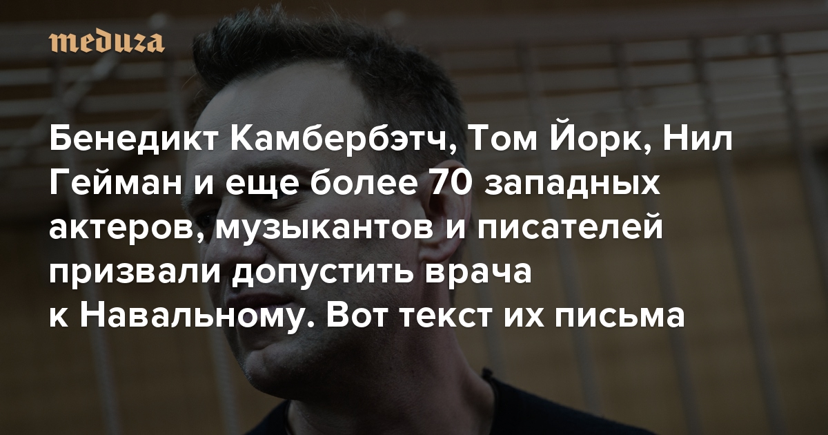 Бенедикт Камбербэтч, Том Йорк, Нил Гейман и еще более 70 западных актеров, музыкантов и писателей призвали Путина допустить врача к Навальному Вот текст их открытого письма