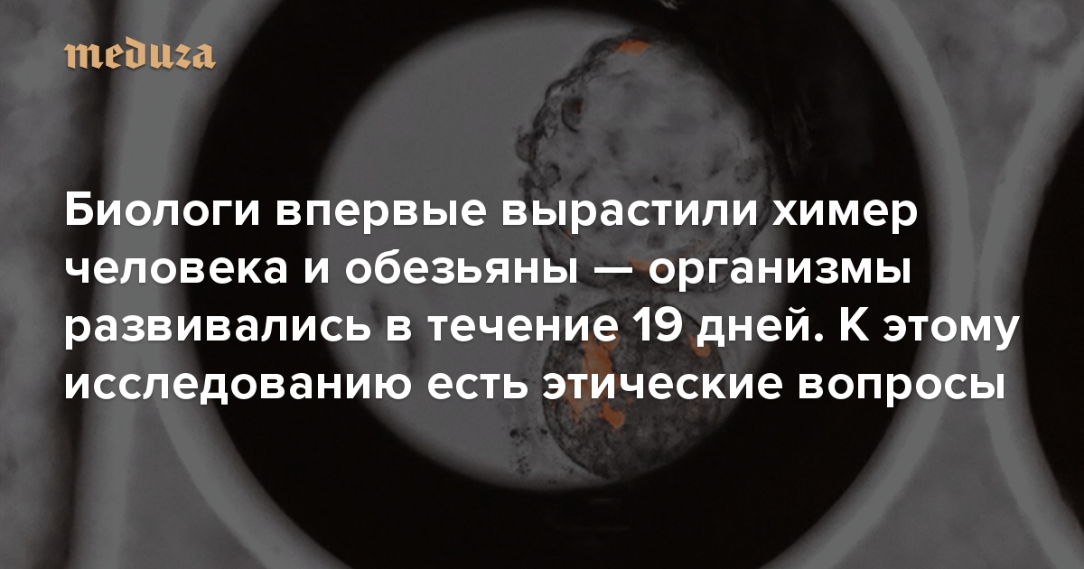 Биологи впервые вырастили химер человека и обезьяны — организмы развивались в течение 19 дней. К этому исследованию есть этические вопросы