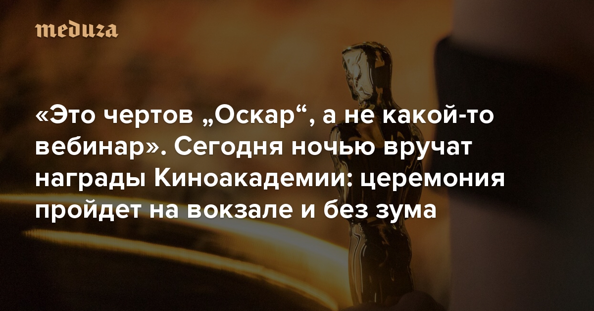 «Это чертов „Оскар“, а не какой-то вебинар» Сегодня ночью вручат награды Киноакадемии: церемония пройдет на вокзале и без зума. Постановщик — Стивен Содерберг
