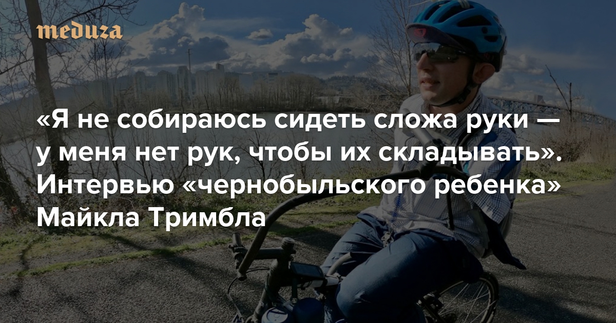 26 апреля 1986 года на Чернобыльской АЭС произошел взрыв — в ту ночь погибли два человека, но люди продолжали умирать от последствий аварии еще месяцы и годы. Ученые до сих пор обсуждают, могла ли радиация повлиять на детей, которые родились у облученных родителей, — и не могут прийти к однозначному выводу. Майкл Тримбл — это имя ему дали в США после усыновления — знает лишь, что родился в 1987 году в Ленинграде и что его мама была рядом с Чернобылем в дни катастрофы. И это единственное, что Тримбл знает о маме: увидев, что ребенок родился без рук, родители отдали его в детдом. Его усыновила очень набожная американская семья из Питтсбурга, и уже в Америке Майкл осознал свою ориентацию, пережил попытки «отучить» его от гомосексуальности, сбегал из дома и даже пожил в заведении для малолетних преступников. А потом выучился в престижном университете на политолога, сменил несколько мест работы и завел канал на ютьюбе — чтобы каждый день демонстрировать людям, как без рук можно играть в боулинг, пользоваться электробритвой и ездить на велосипеде. Спецкору «Медузы» Лилии Яппаровой Майкл рассказал, как ему удается вести такую насыщенную жизнь, как он рассчитывает «вернуть равенство» в большую американскую политику и с какой платформой намерен участвовать в выборах губернатора штата Орегон.