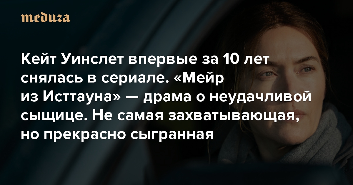 На американском HBO и в российской «Амедиатеке» вышел сериал «Мейр из Исттауна» — медленный детектив с Кейт Уинслет в главной роли, а также Гаем Пирсом и Эваном Питерсом. Кинокритик Егор Москвитин рассказывает о первом за десять лет сериале, в котором сыграла Уинслет, и о том, чем он похож на фильм «Манчестер у моря».