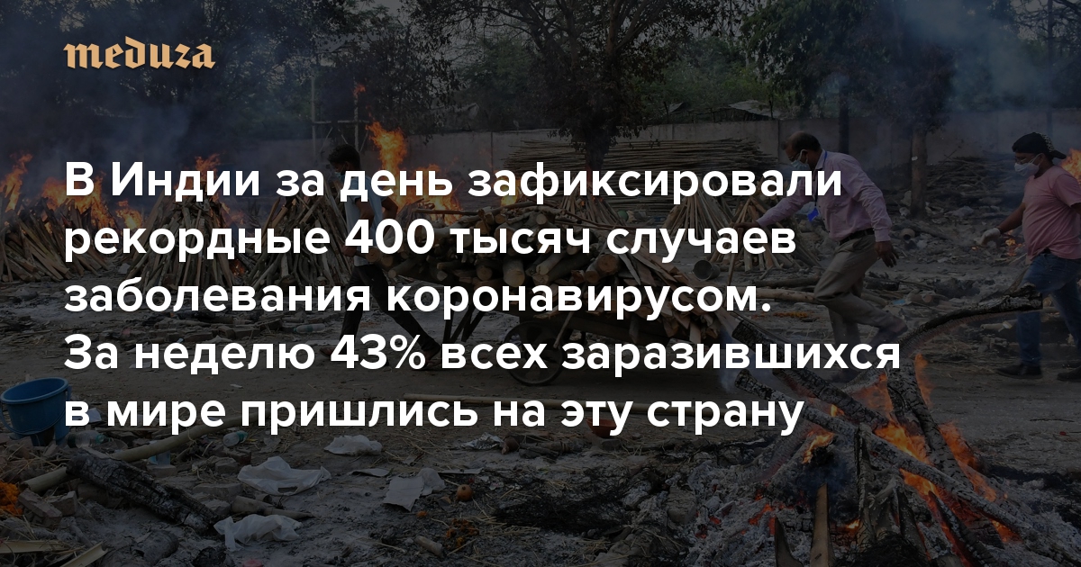 В Индии за день зафиксировали рекордные 400 тысяч случаев заболевания коронавирусом. За неделю 43% всех заразившихся в мире пришлись на эту страну