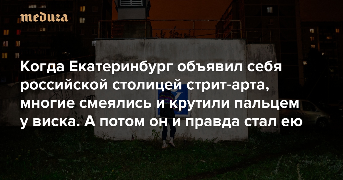 Уличное искусство за несколько последних лет стало одной из главных достопримечательностей Екатеринбурга. Его здесь так много, что улицы города представляют собой настоящую галерею социального и даже протестного стрит-арта — и местные коммунальщики закрашивают его гораздо реже, чем в других городах России. Это может звучать парадоксально, но в популяризации уличного искусства серьезно участвовали местные власти, которые одобрили и финансировали целый легальный фестиваль уличного искусства в Екатеринбурге — правда, потом у него появился «партизанский» соперник. А местные уличные художники признались спецкору «Медузы» Андрею Перцеву, что просто в какой-то момент без особых на то оснований решили провозгласить Екатеринбург российской «столицей стрит-арта». А потом он и правда стал ею.