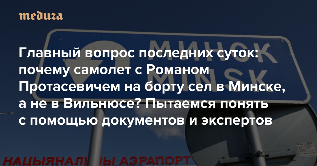 Главный вопрос последних суток: почему самолет с Романом Протасевичем на борту сел в Минске, а не в Вильнюсе? Пытаемся понять с помощью документов и экспертов