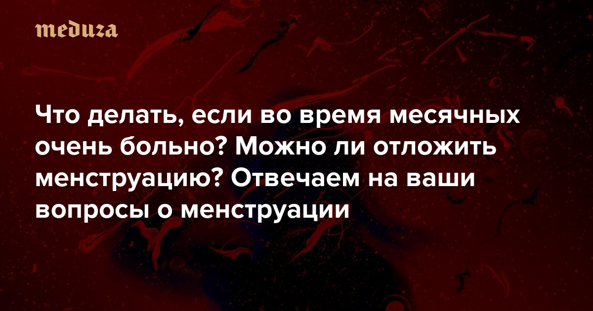 Что делать, если во время месячных очень больно? Можно ли отложить менструацию? Как поддержать близкого человека, которому плохо во время месячных? Отвечаем на ваши вопросы о менструации