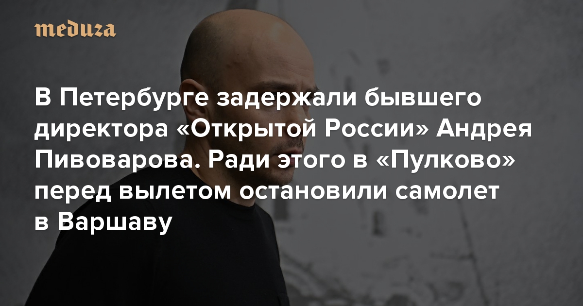 Вечером 31 мая в Петербурге задержали бывшего исполнительного директора «Открытой России» Андрея Пивоварова. Сам Пивоваров сообщил, что это произошло в аэропорту «Пулково», когда он собирался улететь на самолете авиакомпании LOT на отдых в Варшаву. Полицейские остановили вылет самолета, который находился на взлетно-посадочной полосе и готовился к вылету. «Самолет остановили на рулежке, то есть уже когда самолет собрался взлетать <…> на борт взошла группа полицейских и сотрудников ФСБ, после чего мне сказали, что я нахожусь в розыске», — рассказал Пивоваров «Эху Москвы» (в базе МВД данных о его розыске нет). В итоге самолет вылетел в Варшаву с опозданием на один час и 35 минут, следует из данных онлайн-табло «Пулково».