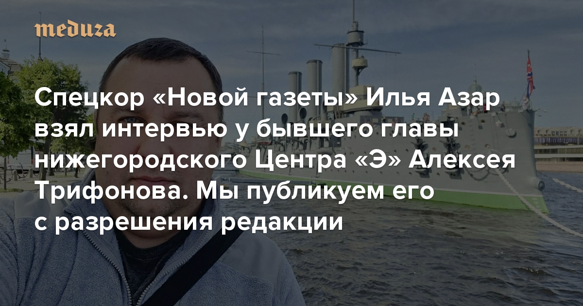«Какой беспредел? Вчетвером берут за руки за ноги и нежно затаскивают в автобус» Спецкор «Новой газеты» Илья Азар взял интервью у бывшего главы нижегородского Центра «Э» Алексея Трифонова. Мы публикуем его с разрешения редакции