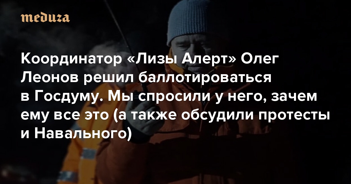 «Поддерживаю ли я власть? Наверное, нет» Координатор «Лизы Алерт» Олег Леонов решил баллотироваться в Госдуму. Мы спросили у него, зачем ему все это (а также обсудили протесты и Навального)