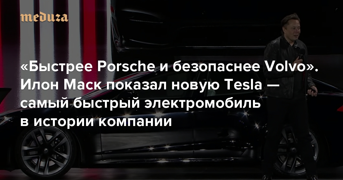 «Быстрее Porsche и безопаснее Volvo». Илон Маск показал новую Tesla — самый быстрый электромобиль в истории компании