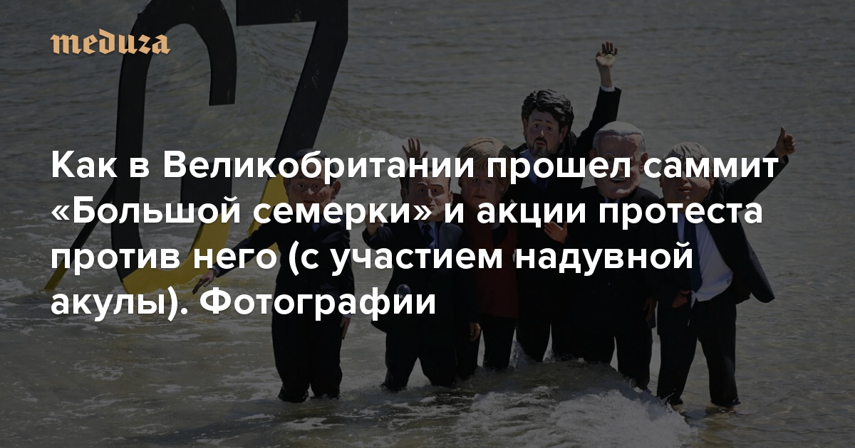 Как в Великобритании прошел саммит «Большой семерки» и акции протеста против него (с участием надувной акулы). Фотографии