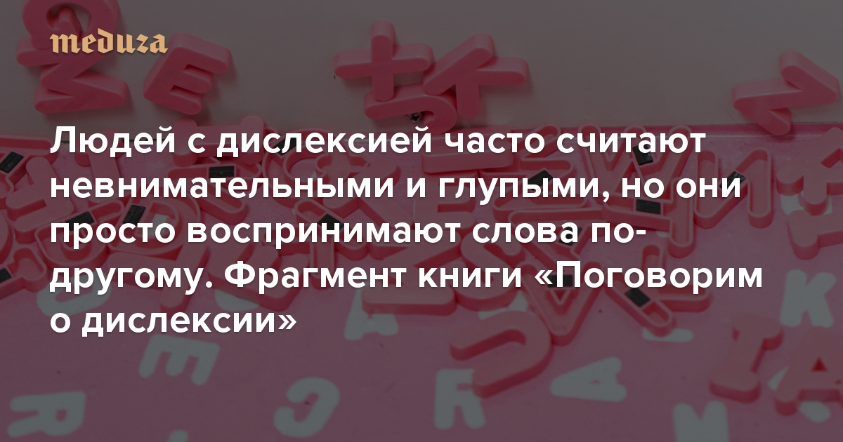 Людей с дислексией часто считают невнимательными и глупыми, потому что они пишут с ошибками и с трудом читают. Но они просто воспринимают слова по-другому Фрагмент книги «Поговорим о дислексии»