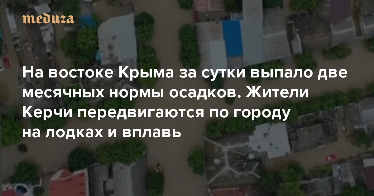В ночь на 17 июня на востоке Крыма начались сильные дожди — за несколько часов в некоторых районах выпало почти две месячных нормы осадков, что привело к подтоплениям. Больше всего пострадали Керчь и прилегающие Ленинский и Кировский районы: по многим улицам теперь можно передвигаться только на лодках. Около 40 тысяч человек остались без света, около 20 тысяч — без воды, подтоплено более 300 частных домовладений, на полуострове введен региональный режим ЧС. Власти пообещали, что жителям полуострова, чьи дома пострадали, компенсируют ущерб после его оценки специалистами. Погода в регионе, как ожидают синоптики, улучшится 18 июня.