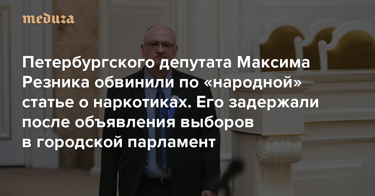 Петербургского депутата Максима Резника обвинили по «народной» статье о наркотиках. Его задержали после объявления выборов в городской парламент