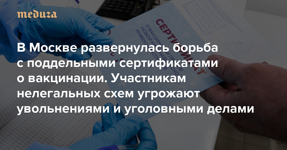 Как выяснила «Медуза», в Москве развернулась борьба с поддельными сертификатами о вакцинации Участникам нелегальных схем угрожают увольнениями и уголовными делами