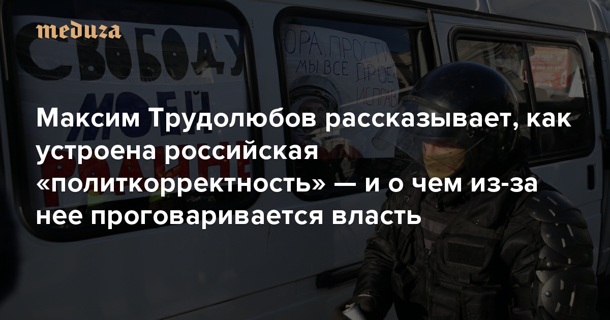 В России легко стать фигурантом уголовного дела за «незаконное» публичное высказывание или «оскорбление» в адрес чиновников или других социальных групп. У этого есть причина: власть настаивает на том, что ее интерпретация реальности — единственно верная. Редактор рубрики «Идеи» Максим Трудолюбов следит за тем, как в России формируется своя особенная «политкорректность», главная особенность которой в том, что она насаждается силой, сверху вниз, а не возникает в рамках общественного диалога.