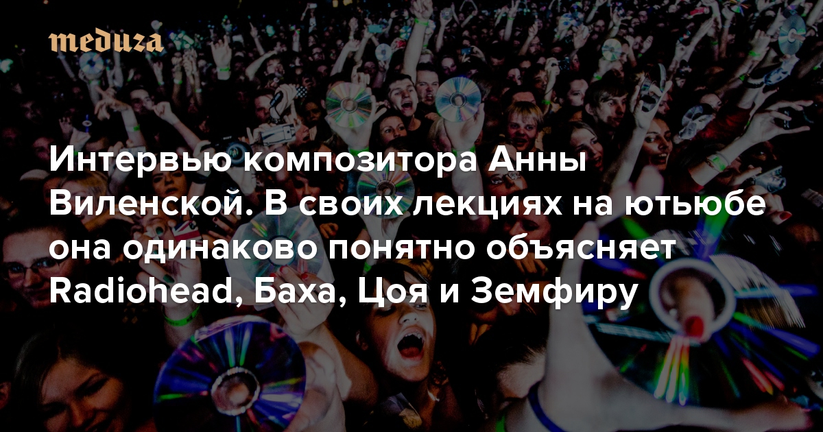 «Я подумала: ну епрст, все слишком сложно» Интервью композитора Анны Виленской. В своих лекциях на ютьюбе она одинаково понятно объясняет Radiohead, Баха, Цоя и Земфиру