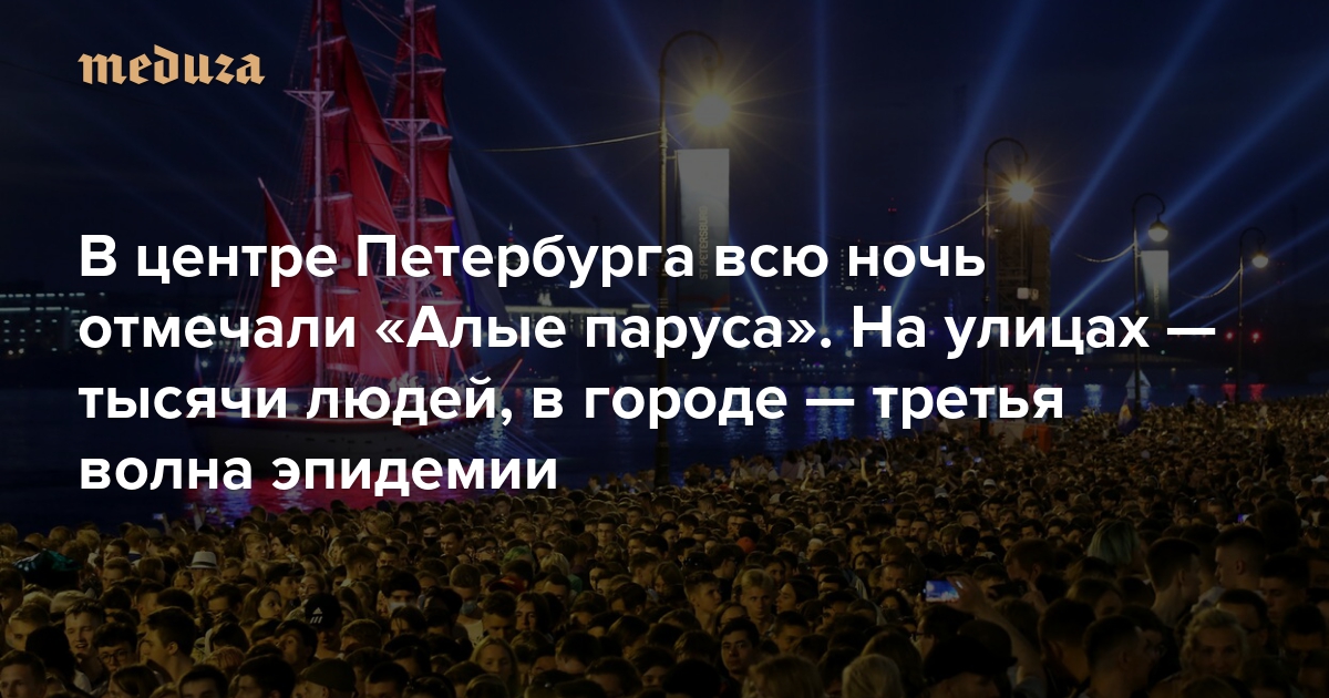 «Город выстоит! Праздник состоится!» В центре Петербурга всю ночь отмечали «Алые паруса». На улицах — тысячи людей, в городе — третья волна эпидемии