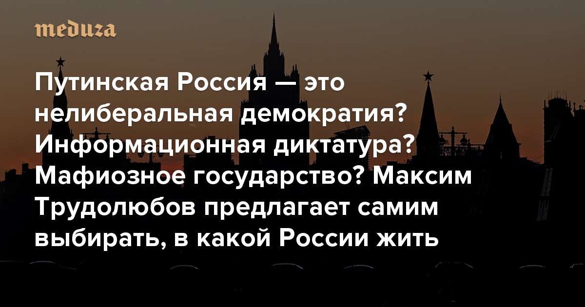 Путинская Россия — это нелиберальная демократия? Информационная диктатура? Мафиозное государство? Максим Трудолюбов предлагает самим выбирать, в какой России жить. И советует для этого книги