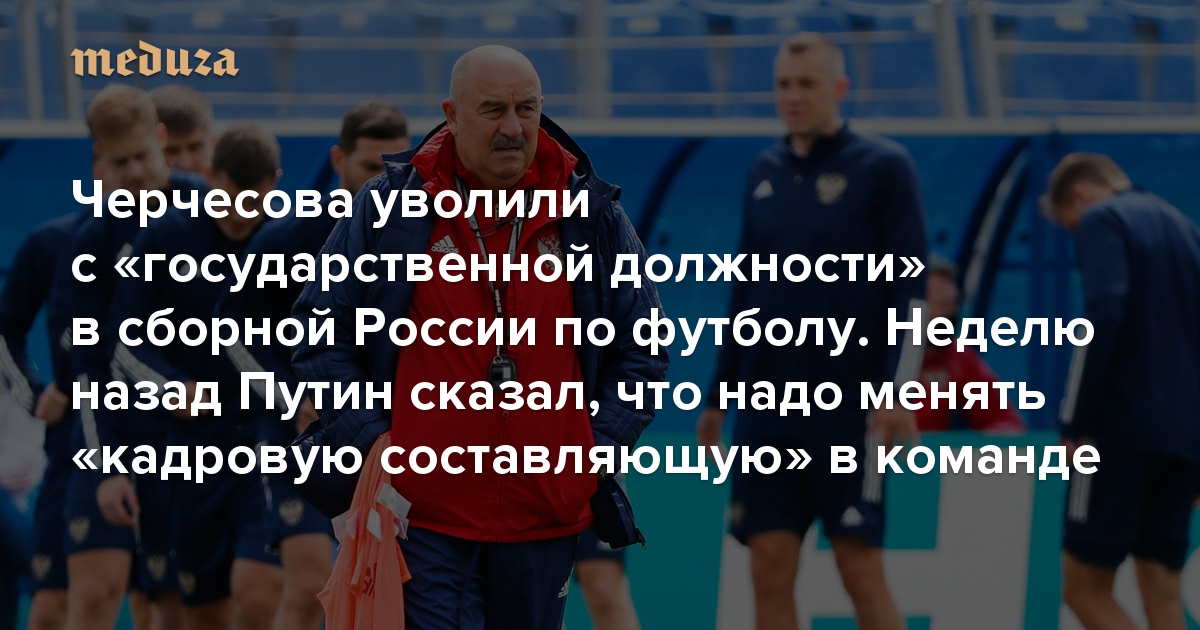 Черчесова уволили с «государственной должности» главного тренера сборной России по футболу Неделю назад Путин сказал, что надо менять «кадровую составляющую» в команде
