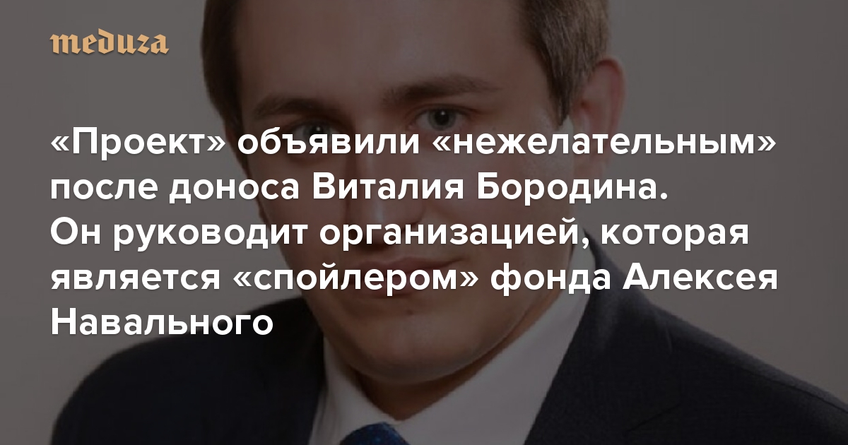 «Проект» объявили «нежелательным» после доноса Виталия Бородина. Он руководит организацией, которая является «спойлером» фонда Алексея Навального