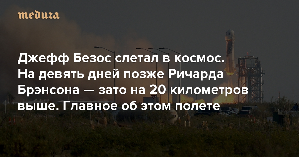 Джефф Безос слетал в космос. На девять дней позже Ричарда Брэнсона — зато на 20 километров выше. Главное об этом полете