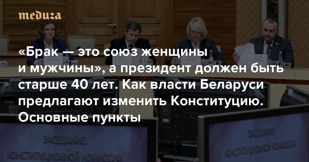 «Брак — это союз женщины и мужчины», а президент должен быть старше 40 лет Как власти Беларуси предлагают изменить Конституцию. Основные пункты