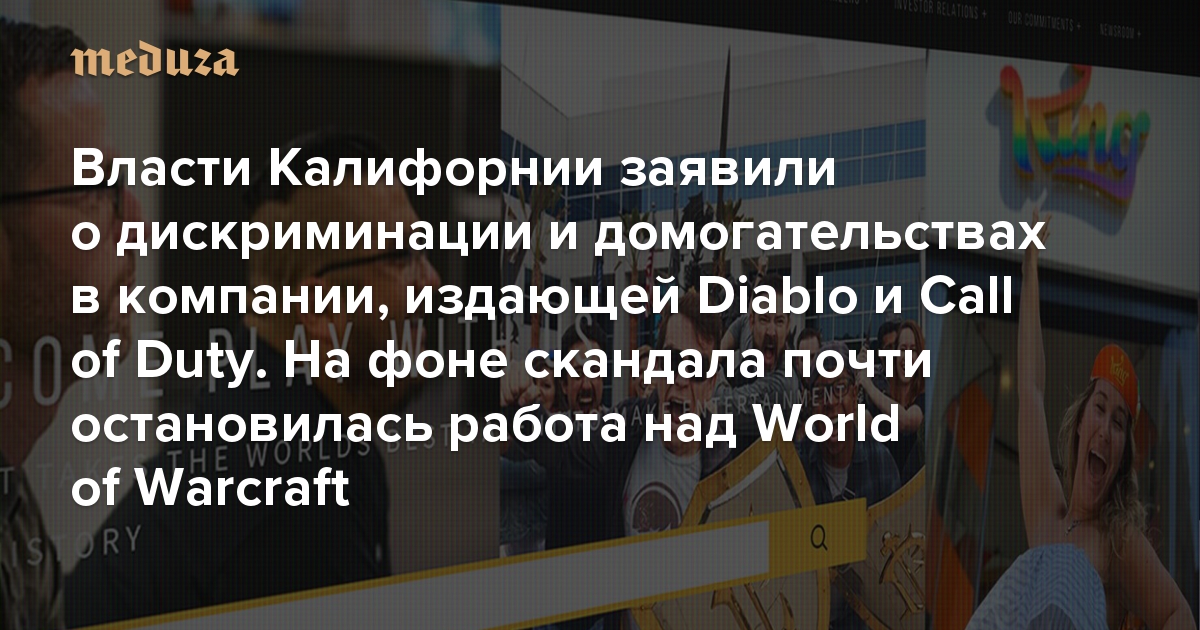 Власти Калифорнии заявили о дискриминации и домогательствах в компании, издающей Diablo и Call of Duty. Сотрудники и игроки ответили бойкотом На фоне скандала почти остановилась работа над World of Warcraft