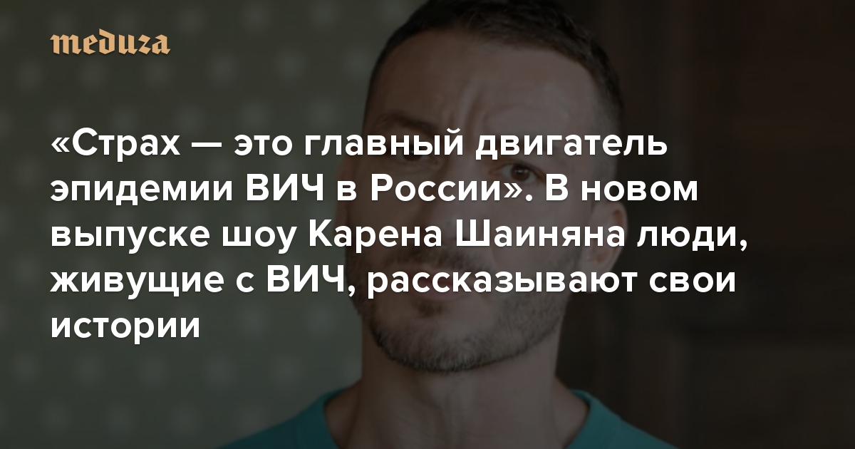 «Страх — это главный двигатель эпидемии ВИЧ в России» В новом выпуске шоу Карена Шаиняна люди, живущие с ВИЧ, рассказывают свои истории