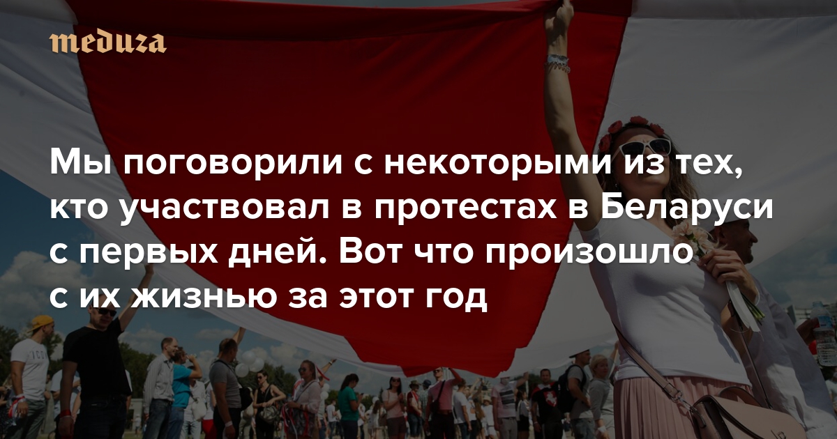 9 августа 2020 года в Беларуси состоялись президентские выборы. По официальным данным, в гонке победил Александр Лукашенко, якобы набравший больше 80% голосов. После оглашения результатов по всей стране начались беспрецедентные акции протеста. На самые массовые из них (в Минске) выходили сотни тысяч — такого в белорусской истории еще не было. Следом за протестами развернулись масштабные репрессии, которые не стихают до сих пор. Заведены тысячи уголовных дел, граждан продолжают арестовывать и отправлять в колонии по абсурдным обвинениям — хотя многолюдных митингов уже давно нет. О Беларуси до и после этих событий «Медуза» поговорила с теми, кто с первых дней участвовал в протестах.